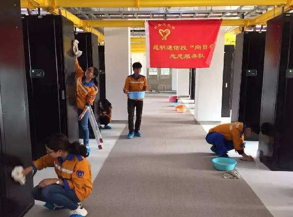 雷锋日,昆明通信段团委还组织“向日葵”志愿服务队在段昆东职培培训基地开展“学雷锋”志愿服务活动,为当班职工送上暖心热茶,帮忙整理办公场所工具物品,查杀清理办公电脑病毒,整理打扫机房卫生,清洗1400多块静电地板,通过“向日葵”志愿者们的齐心协力,让基地面貌焕然一新,展示了通信青年良好的面貌。