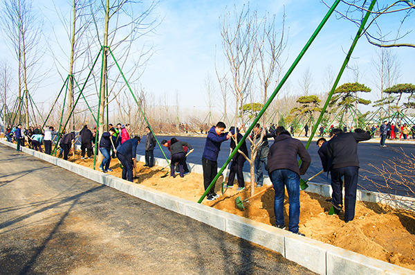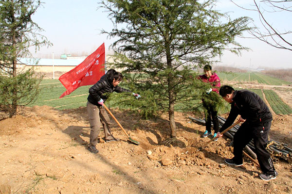 组织志愿者参加义务植树活动。10余名志愿者来到了万官大街东段,按照组织安排开始植树。大家分工合作,你铲土我平整,都以高度的热情、饱满的干劲融入到活动中,大家干得热火朝天、不亦乐乎,很快就把树全部栽好。一部柴静的《穹顶之下》雾霾调查纪录片触碰了公众敏感的神经,也唤醒了我们的环保意识,我们要积极行动起来,植一棵树,绿一方土,爱绿护绿,构建环境优美、生态和谐的宜居环境。