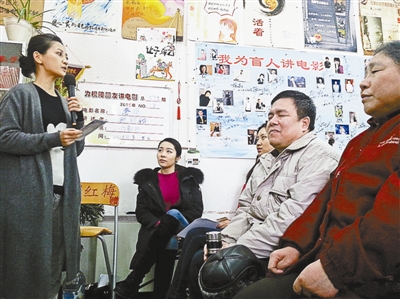 去年3月5日,位于鼓楼西大街的“心目影院”,迎来了第575期为盲人讲电影活动。这次为盲人朋友讲电影的志愿者,全部是来自央视财经频道的主持人,他们在“心目影院”的讲电影活动已经坚持了8年。