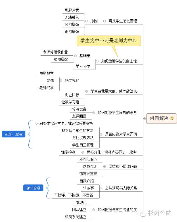 共创解决在校遇到的困难在上山的第一个月里,我们遇到的问题很多,都是自己摸索着解决了,有些问题觉察到了,却没来得及解决,或者自己想不到更好的解决方案,趁着周末培训的时候,会专门给时间让大家提出自己的疑难,用团队的力量找到更好的解决方案,也提高了自己解决问题的能力。现在遇到任何问题,首先会自己想出几个对策,再去找团队讨论,让在校的工作进展得更加顺利。
