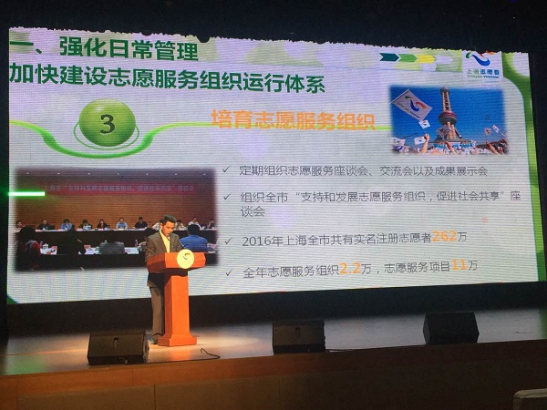 会上,姜鸣同志回顾了2016年市志愿者协会的主要工作;另外,会议通过视频的形式对全市的党员志愿服务、“拯救斑马线”交通文明志愿服务以及金山工业区“5分钟服务圈”志愿服务品牌进行了交流展示;崇明区文明办和黄浦区五里桥街道现场交流了社区志愿服务中心推进过程中的经验做法。