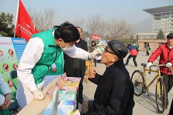 由泰安市卫计委主办的“弘扬雷锋精神 护佑百姓健康”大型义诊活动在泰安市市政广场举办。市直机关工委副书记魏文峰、共青团市委副书记刘荣星、市志愿服务联合会秘书长朱杰,市卫计委党委书记、主任刘焕星以及市卫计委导班子成员,相关科室负责人出席活动并慰问了参加义诊的志愿者。本次义诊活动共组织全市4家省级医疗单位、16家市直医疗卫生计生单位,现场参与义诊的志愿者180余名,展出展板140余块,发放宣传单5000余份,共为350余名市民进行义诊和健康咨询。