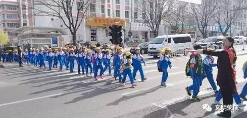 好运角小学组织学生制作手抄报、黑板报等,广泛宣传和引导学生安全出行、文明出行。为避免校门口出现车辆拥堵的现象,该校组织教师志愿服务队,每天上学、放学期间在校门口指挥交通,带领学生排队过马路。该校还通过评选“文明学生”“文明家长”“文明志愿者”等活动,带动家庭和社区一起文明出行。