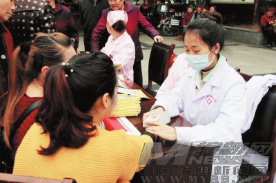 昨日,经开区松垭镇人民医院的医护人员和志愿者一起来到白山社区为居民开展血友病的义诊和宣传。