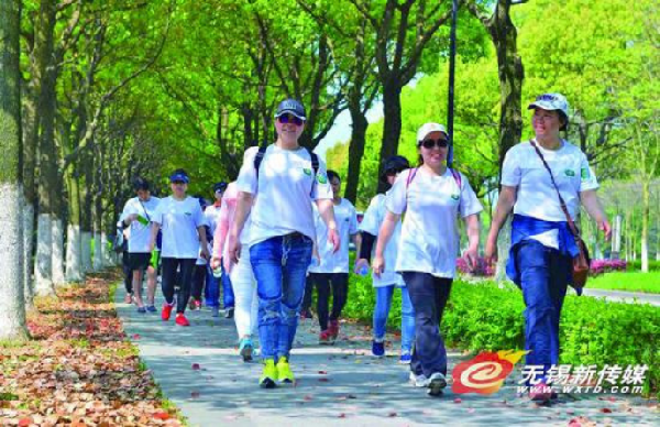本次徒步全长10余公里,由位于长广溪湿地公园内的无锡慈济环保教育基地出发,沿山水东路、环湖路、金城西路、蠡湖大道、周新路、金石路环蠡湖而走,途经湖玺庄园、花园大酒店、双虹桥、双虹园、湖滨饭店、威尼斯花园、长广溪湿地公园水明居、长广溪桥等地。一路山水相伴,风景如画,行者置身于绿色和鲜花的怀抱之中,一路前行一路欣赏,一路欢声笑语。活动中大家都自觉保护环境,将喝完水的空瓶子收进垃圾袋。经过2个多小时的行走,活动圆满结束。