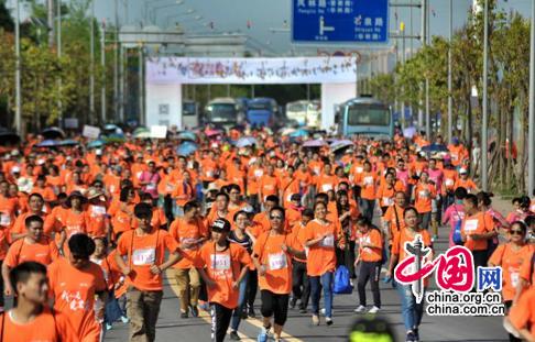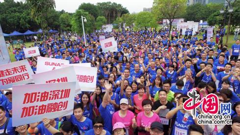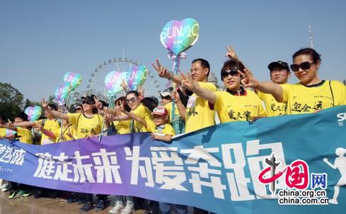 4月22日,由融创中国主办的"健走未来,为爱奔跑"在北京、天津、上海、重庆、杭州、深圳六城同时开跑。此次"六城同跑"有一个公益目标:集1万人,捐1亿步,为贵州等偏远地区的六所小学捐建六座"英苗书屋"。