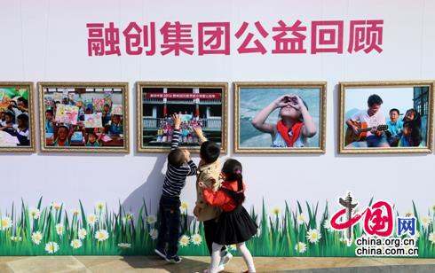 公益墙记录了近几年融创中国的公益之路:2015年,融创开展了"我心公益 英苗助学计划"。当年,组织30多名志愿者进山,为贵州芳武小学带去大量书籍和体育用品等支教物资,建立起第一座"英苗书屋"。2016年,融创又把芳武小学的8位孩子带出深山,进行"英苗成长记"北京行。