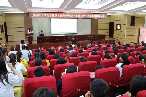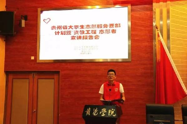 “我相信,基层志愿服务会影响我的一生,对基层志愿服务的选择我不后悔!”5月10日至11日,贵州省大学生志愿服务西部计划暨“资教工程”志愿者宣讲会走进了贵阳学院和贵州师范学院。黔籍艺人、传梦公益基金创始人孔维,遵义市播州区西部计划志愿者徐增辉,铜仁市玉屏县西部计划志愿者刘飞,“资教工程”志愿者黄常林等志愿者在报告会上通过宣讲自己在西部基层工作的经历来 鼓励贵州大学生积极参与到西部志愿服务中去。