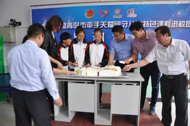5月23日下午,2017年欢度六一暨青岛市牵手关爱留守儿童特色课程进校园启动仪式在移风店中学举行,50余名留守儿童和来自日照银行的青年志愿者们欢聚一堂,欢度六一。活动中,日照银行青岛支行向留守儿童捐赠了价值一万元的公益课程,团市委向留守儿童发放了11000元的牵手关爱专项资金,并和孩子们一起分享了节日大蛋糕。启动仪式结束后,志愿者为孩子们带来了烘焙课堂。此次烘焙课堂是团市委“公益课堂进校园”系列活动之一,旨在通过开设烘焙、创意美术、园艺等特色课程,引导志愿服务需求和资源的有效对接,从而实现对留守儿童的精准帮扶。