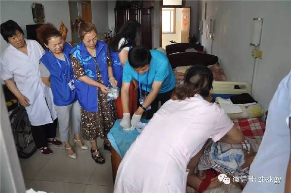 志愿者们还利用自己的专业知识,帮助老人按摩、换药,告知护理人员护理及换药事项。