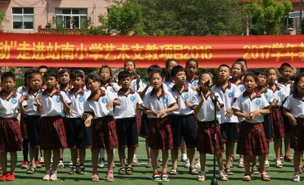 5月27日,济南市歌舞剧院"蒲公英志愿者在行动"项目志愿者走进他们所支教的商河县韩庙镇站南小学,举行站南小学艺术支教2016--2017学年教学成果汇报演出活动,通过舞蹈、音乐表演与孩子们一同度过了欢乐的六一。