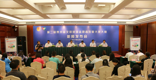 6月9日,由共青团贵州省委、贵州省文明办、贵州省旅游发展委员会、贵州省文联、铜仁市人民政府、贵州省志愿服务联合会共同主办的“第二届贵州省文明旅游志愿者形象大使大赛”新闻发布会在贵阳举行。全省各市(州)团委、志愿服务组织,高校团委负责同志等100余人参加了新闻发布会。