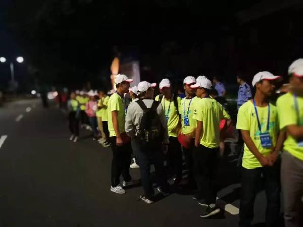 4591名青年志愿者身穿荧光绿的统一服饰组成一大片绿色的海洋