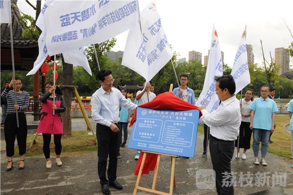 参加活动的领导为“河小青”志愿者代表佩戴了志愿彩,并为首批“河小青”志愿服务指示牌揭牌。淮阴师范学院、淮阴中学等10所学校接过了“河小青”志愿服务队旗,标志着“保护母亲河 共创文明城”专项行动正式启动。