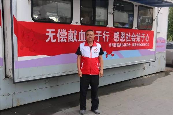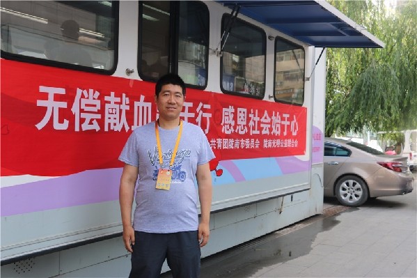 无偿献血志愿服务队队长蒲彦军组织并参加献血活动