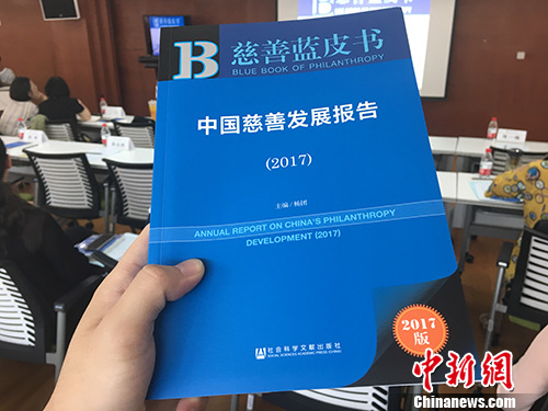 图为《慈善蓝皮书:中国慈善发展报告(2017)》。汤琪 摄