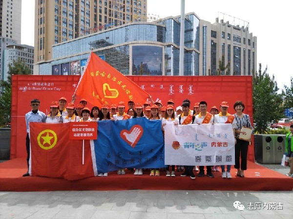 自治区人民政府副秘书长许宏智为内蒙古无偿献血志愿者服务队授旗
