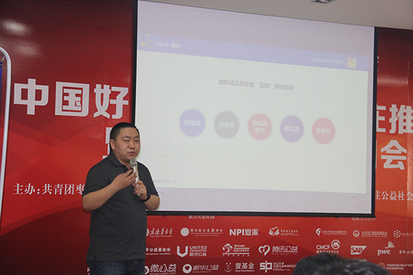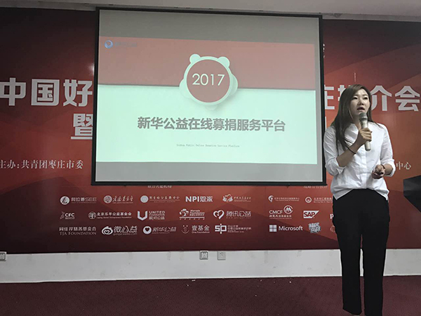 图为新华公益在线募捐服务平台传播官姜程做主题分享。
