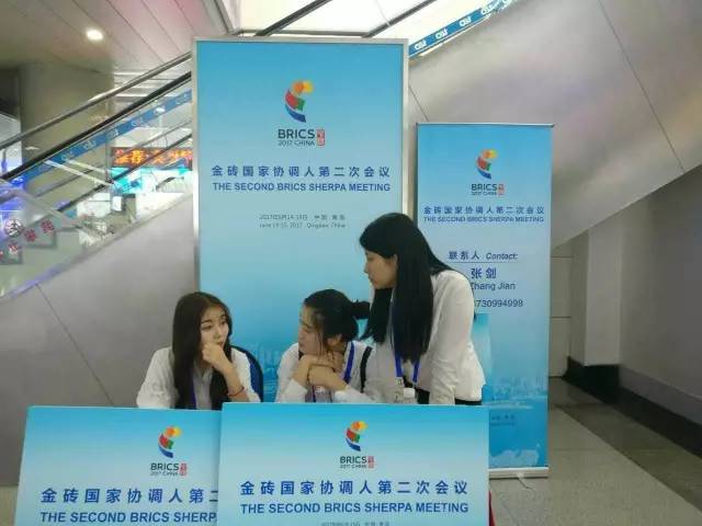 团青岛市委、市青年志愿者协会承担本次大会的志愿服务,从山东科技大学优中选优选拔40名外语水平强、综合素质高的青年志愿者,分布在安保驻地、咨询台、后勤保障、会务、会议注册、媒体接待、交通环境保障、接待、机场火车站迎送、演出宴会展览等岗位,从6月10日到6月15日为来自国内外的与会嘉宾提供志愿服务。他们以饱满的精神状态、专业的服务水准以及责无旁贷的使命感,完满完成了大会志愿服务保障,亮出了最美的青春志愿名片。