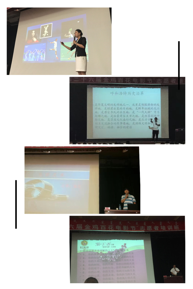 2017年6月18日,第26届中国金鸡百花电影节第一期志愿者培训班在呼和浩特职业学院开展。通过前期一个月的招募,共有13301名高校和社会志愿者报名参加。根据金鸡百花电影节招募条件,通过初步筛选,按照就近就便的原则,第一期培训班共有来自内蒙古财经大学、内蒙古工业大学、内蒙古医科大学、呼和浩特民族学院、呼和浩特职业学院、大学城各高校、外地高校等500名志愿者参加。