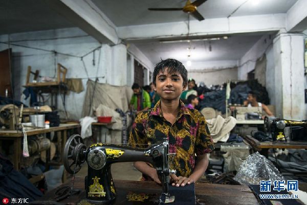 2015年12月2日报道(具体拍摄时间不详)摄影师克劳迪奥-蒙特萨诺-卡西拉斯(Claudio Montesano Casillas)日前走进位于孟加拉国首都达卡的服装工厂,拍摄了一组童工生活窘照。这些工厂没有规范的营业,童工每天加班加点干活,而工资只有大约20便士(约合人民币2元),且每周只有半天的休息时间。他们吃饭、洗澡、睡觉都在工厂内,生活相当艰苦。