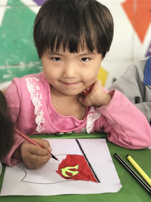 活动中,志愿者们结合实际、发挥创意,展现青春风采,增添党旗光彩。