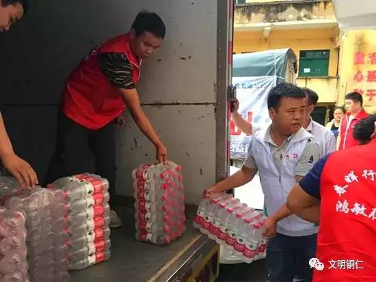 面对灾情,团碧江区委联合娃哈哈铜仁公司,为在一线的环卫工人送上饮用水,用行动支持灾后重建工作。鸿敏集团积极响应号召,义不容辞地参与到抗洪救灾的行动中来,筹集物资共同帮助铜仁受灾的父老乡亲。