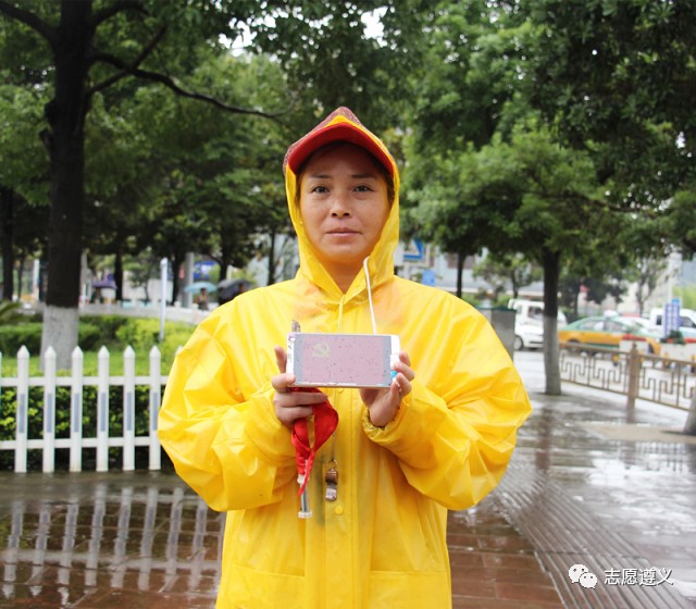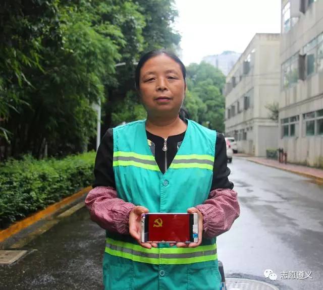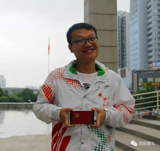 遵义市汇川去环保志愿者陈先军与党旗合影