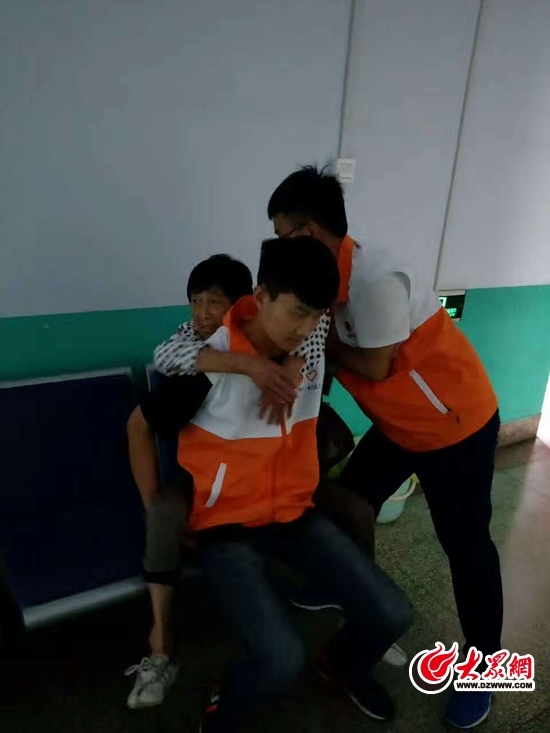 随后,志愿者又驱车前往市医院,一路将老人背到急诊室。在和旅行社经理汇合后,志愿者又把相关注意事项跟旅行社经理交代后,随后便与老人道别。受伤的老人非常激动,一直在连连称赞日照好人,并万分感谢日照的志愿者。