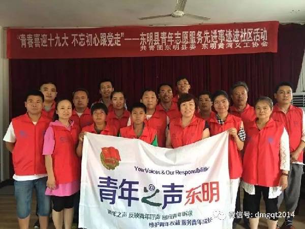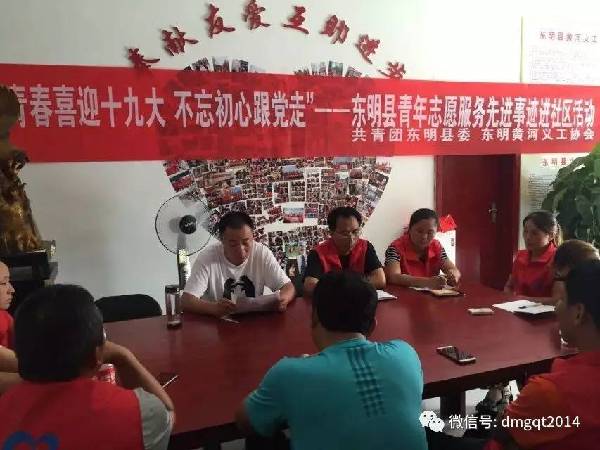 为贯彻落实党中央关于迎接、宣传、贯彻党的十九大的重要指示精神,团结引领广大青少年以奋发向上的精神状态迎接党的十九大,根据省市团委要求,东明团县委、县黄河义工协会联合开展了“青春喜迎十九大不忘初心跟党走”青年志愿服务先进事迹进社区活动。