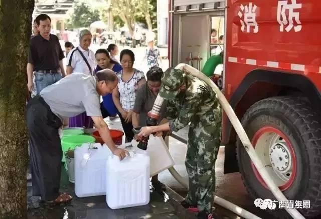 ▲县委县人民政府设置临时供水点,为市民供应生活用水。