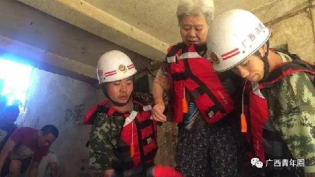 ▲7月2日,融安县消防大队在转移被困群众。