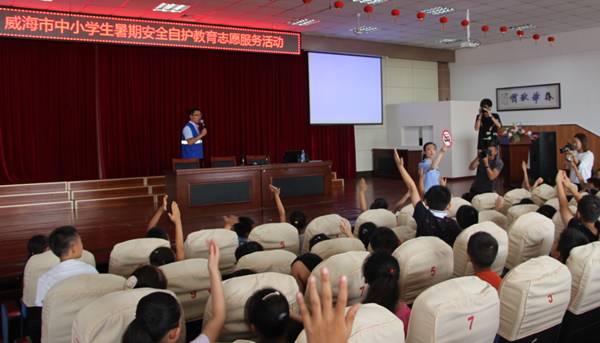 每年的暑假,孩子的安全问题都是家长和学校不容忽视的“重中之重”。为了让学生度过一个安全而愉快的暑假,7月6日上午,威海市志愿者协会邀请蓝天志愿救援队、交警一大队民警为统一路小学的学生上了一堂生动的“安全自护教育”课,拉紧暑期“安全弦”。