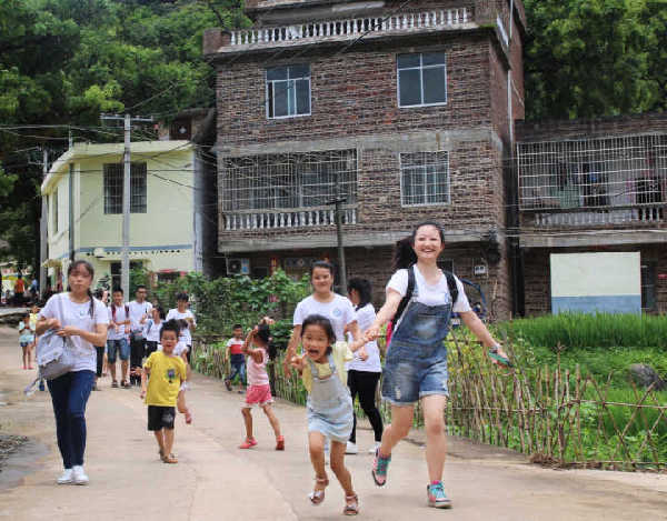 沉重的教学物资、泥泞弯曲的山区道路,甚至忍着因为匆忙而没来得及吃一口早饭的饥饿感,同学们依然坚持着,充满热情地投入每日的支教活动和调研宣传中。待队员一一将留守儿童从家里接回到支教活动地点后,打扫卫生、布置教室、调试设备,他们都事无巨细的认真做好每一项准备工作。