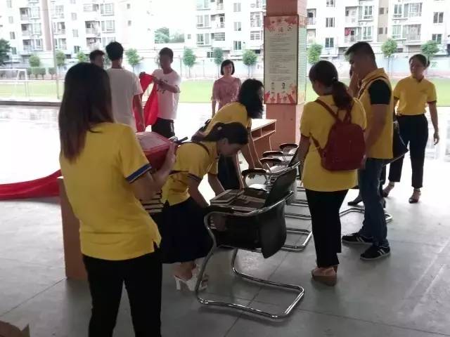 7月7日,东莞寮步志愿者协会西溪小学家长志愿服务队的队员助力学校进行“西溪小学2016-2017年度第二学期结业典礼”活动的开展。早上下起了瓢泼大雨,为使结业典礼顺利进行,30多名志愿者冒雨护送学生入校。志愿活动完毕之后,志愿者和老师、家长们一起将凳子有序地搬回教室。此次活动,志愿者们用自己的实际行动诠释着“我志愿,我快乐”的志愿者精神。