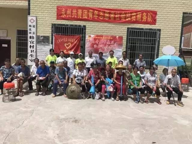 第19分队安海燕、彭飞、谭紫薇、陈欣晨、何忠财走进道县梅花镇修宜村。因场地限制,即便是在炎炎烈日下,群众也安然落座,认真听志愿者宣讲。