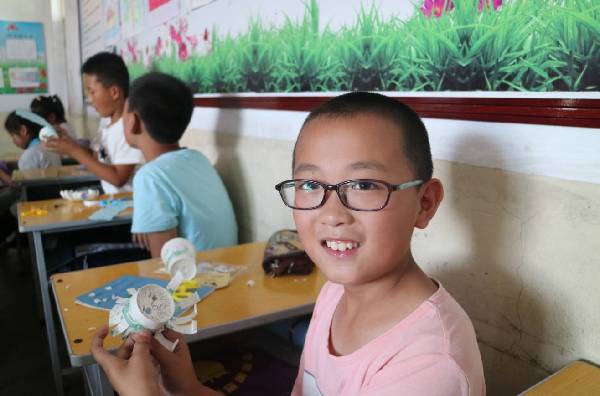 国画课、手工课,同学们蹿到艺术课的速度简直比体育课时跑步还要快。这个年纪的创意与激情,压不住,全部肆洒在一双双小手中。你别说,他们拿起毛笔和手工剪刀的样子,还真有那么会儿事!