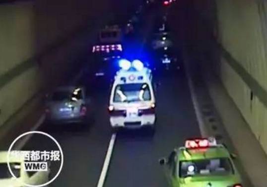 2016年5月17日下午,四川成都红星路下穿隧道内车流量大、车辆排行缓慢。此时,一辆鸣笛救护车匆匆驶入隧道。仅有两车道的隧道内,私家车纷纷向两边避让,给救护车让出了中间一条生命通道。