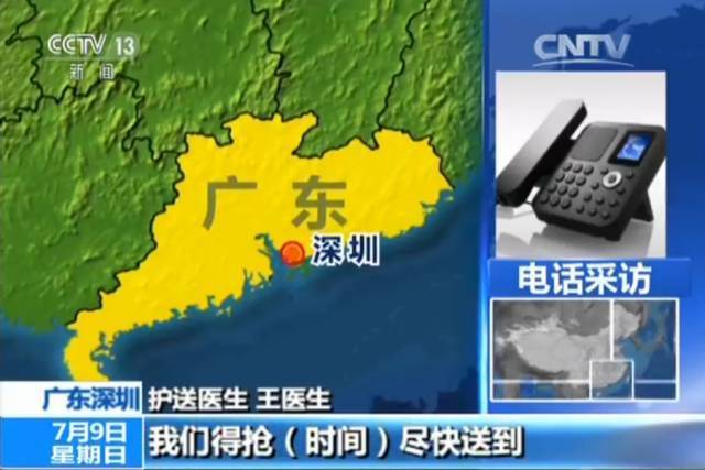当时在救护车上的患者,在东莞突发急性肠胃炎和急性肾炎并引发高烧,需要紧急转送深圳南山医院,由于得到及时治疗,目前已安全出院。