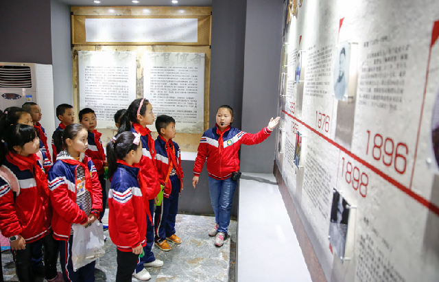 “小小解说员”为学生们讲解历史文化知识。图片来源:铜陵文明网