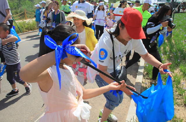爱心公益大使们与环保小卫士们一起入园拾捡垃圾。图片来源:鄂尔多斯市旅游局