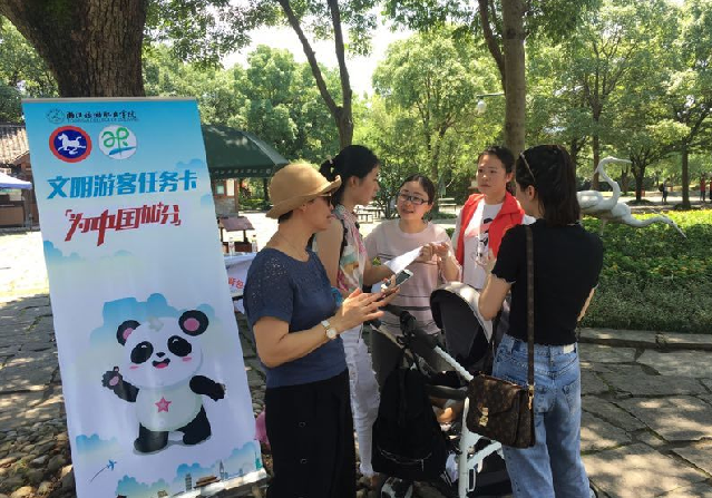 大学生“文明旅游背包行”浙江站公益宣传活动现场。图片来源:浙江文明网