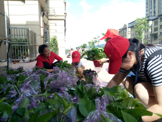 社区工作人员带领小小志愿者们来到海亮九玺南区大门外某花店进行志愿服务,虽然天气炎热,却抵挡不住小志愿者们的热情,帮助他们搬运盆栽,修剪枝叶,浇水除虫。