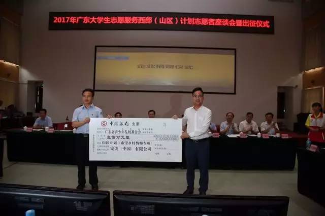 仪式上,邹铭向西部(山区)计划志愿服务队授旗;主办单位领导为服务期满志愿者颁发广东省五星志愿者证书;为支持山区计划(希望乡村教师计划专项),完美(中国)公司在2016年捐赠500万基础上追加100万元,总计两年投入600万元支持该公益活动。
