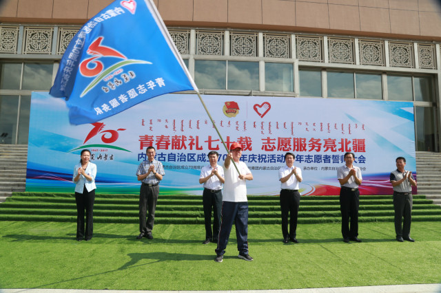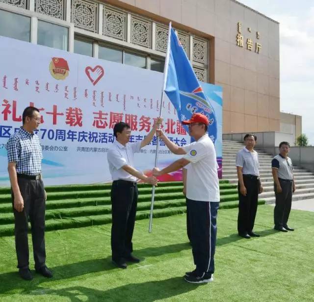 誓师大会上,与会领导为青年志愿者代表颁发了志愿服务任务书。杨博代表自治区成立70周年庆祝活动筹委会办公室为青年志愿者服务队授旗。全体志愿者庄严宣誓,将以专业的技能、认真的态度、良好的状态,提供最优质的服务,向全国、全世界展示好内蒙古青年的风采,展示好内蒙古大草原青年志愿者这张亮丽的“名片”。
