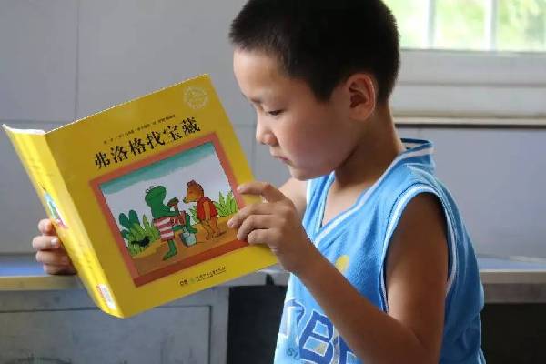 孩子正津津有味品读绘本《弗洛格找宝藏》