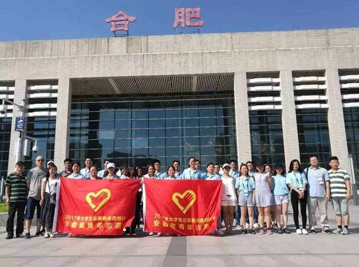 7月20日,安徽省2017年大学生志愿服务西部计划志愿者出征送行仪式在合肥学院举行。团省委、省教育厅、省人社厅有关部门负责同志出席仪式并为志愿者服务团代表授旗。