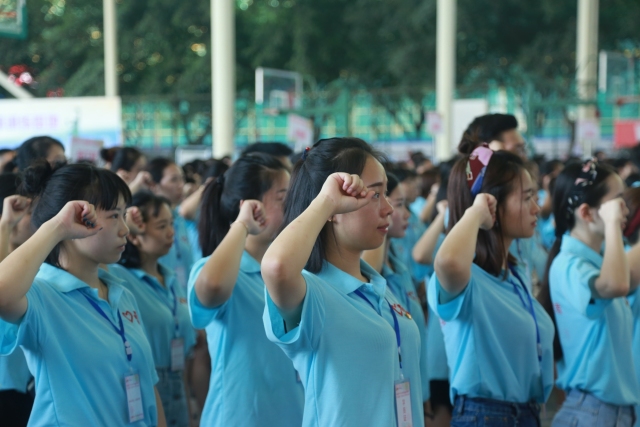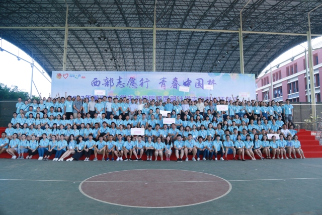 7月28日上午,1200余名2017年重庆市大学生志愿服务西部计划志愿者在重庆电子工程职业学院风雨篮球场整装待发。