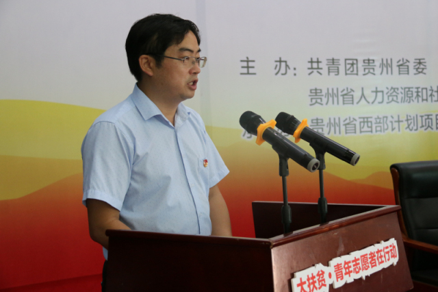 贵州省人力资源和社会保障厅党组成员、副厅长徐海涛宣读了《关于表彰2016-2017年度贵州省大学生志愿服务西部计划优秀志愿者的决定》