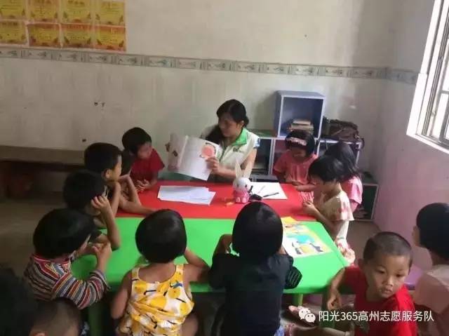 7月17日下午三点,是茂名阳光365志愿者和高州大井将军村婆孙们约好在图书点参加绘本阅读活动的时间。来参加活动的是3-6岁的小孩和他们的爷爷奶奶。当志愿者赵老师拿起绘本,小孩子们一改腼腆害羞的性格,争先恐后的举手回答问题,课堂氛围非常的热烈。两个小时的课堂结束后,意犹未尽的孩子们还可以在乡村志愿者处登记借阅自己喜欢的绘本。